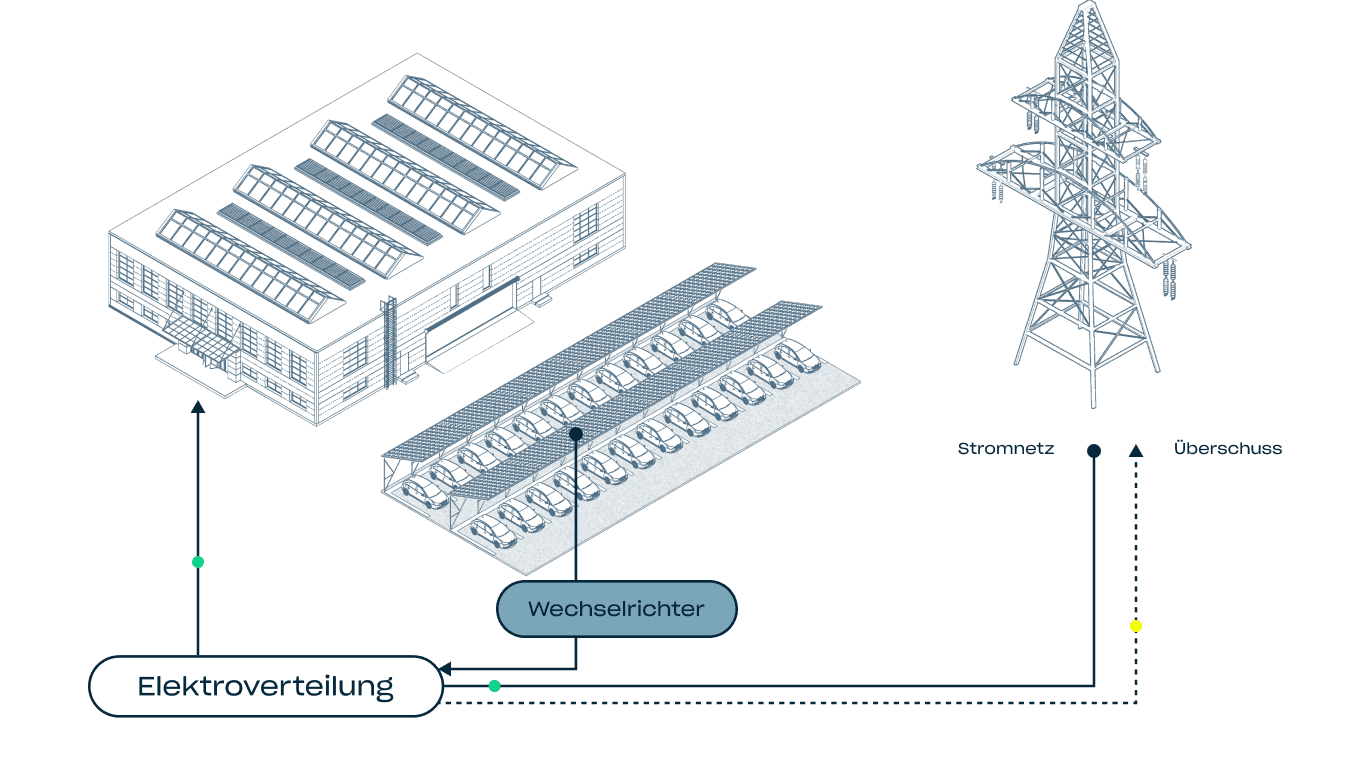 Wir wissen, dass es nicht das Ziel deines Unternehmens ist, die Welt zu retten, aber es ist auch nicht das Ziel, sie zu zerstören. Indem du auf deinem Carport eigenen PV-Strom erzeugst, sendest du deinen Kunden, Mitarbeitenden und Aktionären ein klares Signal. Und wenn du zusätzlich Ladestationen für deren Elektroautos anbietest oder es dir für deinen ESG-Bericht hilft, umso besser.