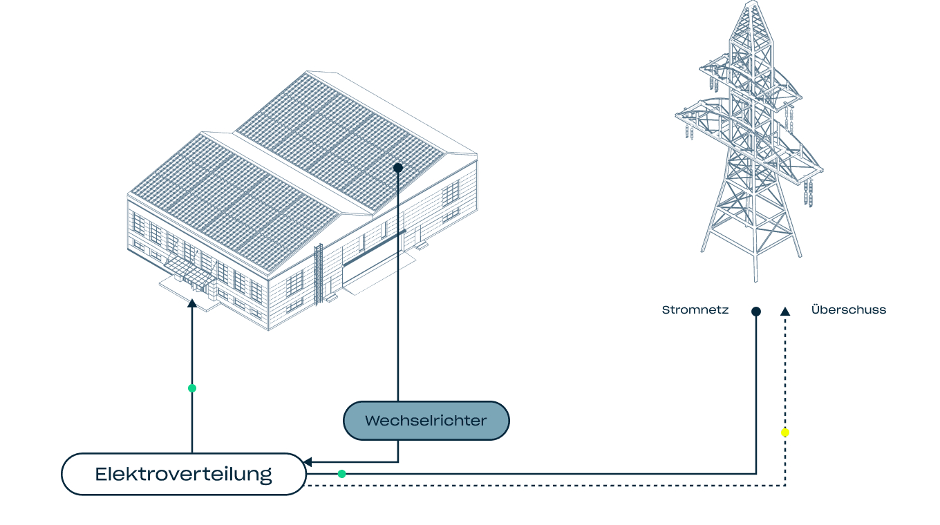 Statte dein Unternehmen mit Solarmodulen auf Dächern oder an Fassaden aus und verwandle es so in einen eigenen Energieerzeuger.