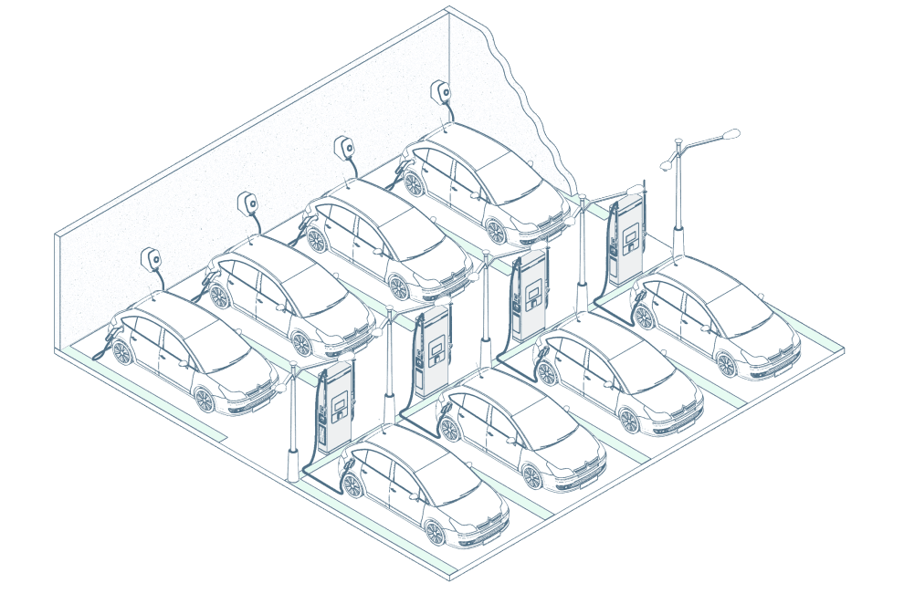 Wie bei allem bieten wir verschiedene Modelle an, abhängig davon, was du brauchst (und wie eilig es ist, die E-Fahrzeuge zu laden): von Schnell- bis hin zu Superschnellladestationen.